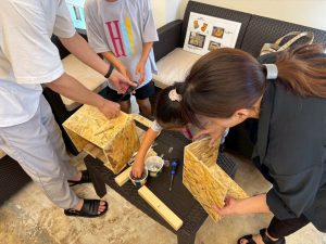 「収納できるいす」づくりでは、親子で試行錯誤しながらも協力しあい、しっかりと完成させている様子👀