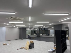 こちらの現場は新しくフィットネスジムの店舗ができるため、改装工事をさせていただいています。