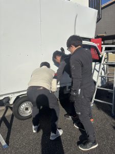 さて先日、社長・専務・工事課の社員さんの3名がキッチンカーの修理をするとのことで、現場へ駆けつけてきました(^.^)