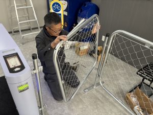 ↓フェンスを組み立てている様子
