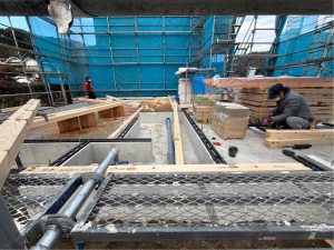 一昨日、昨日で足場の組み立てと土台の工事が行われました!