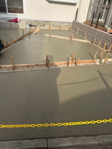 下の写真はコンクリートを流して平らにしてすぐの様子。