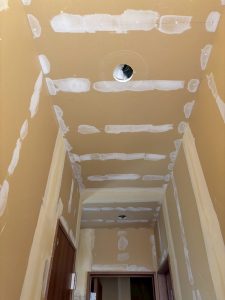 昨日現場へ足を運んだのですが、パテが完了しクロス貼りの工程が始まっていました。