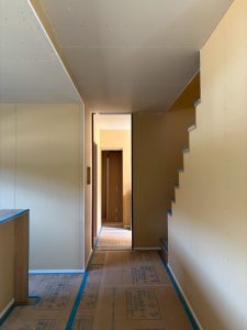 伴中央の家1は大工工事が完了し、今週からクロス工事に入ります。