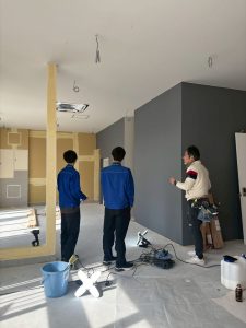 そして午後からのクロス工事の見学では社長が現場で説明しながら、実際に施工している様子を見学してもらいました。